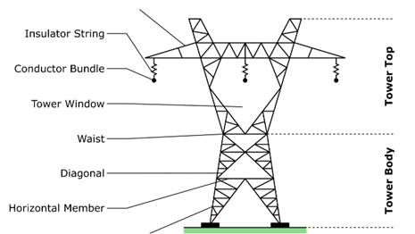 Each transmission line consists of several integral parts that ensure mechanical stability and safe current flow.